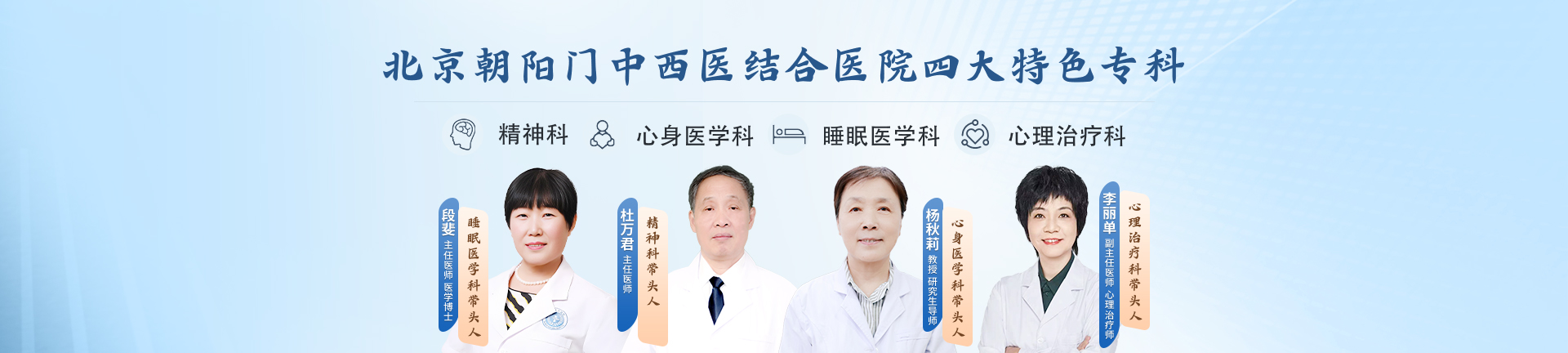 北京朝阳门中西医结合医院精神科,充分运用精神心理疾病的诊疗技能,发挥中西医结合+心理疏导的优势,开展以精神分裂症、抑郁症、焦虑症、失眠症、强迫症、应激障碍、恐惧症、阿尔兹海默病、躯体化障碍、青少年心理问题等精神心理健康临床服务。